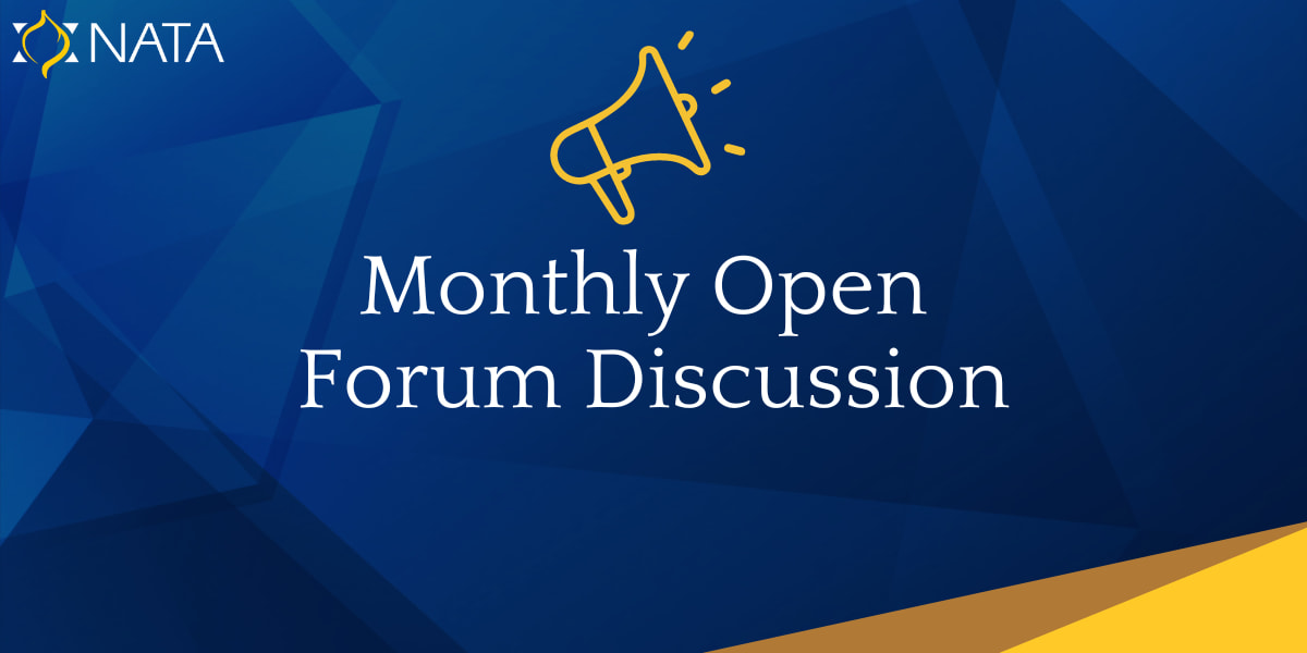 The NATA Open Forums are a great opportunity to connect with your fellow NATA members to learn from and support each other. Bring with you any topics for discussion that are weighing on your mind, or just pop in to say hi and offer your own experiences to others who may be looking for new ideas.